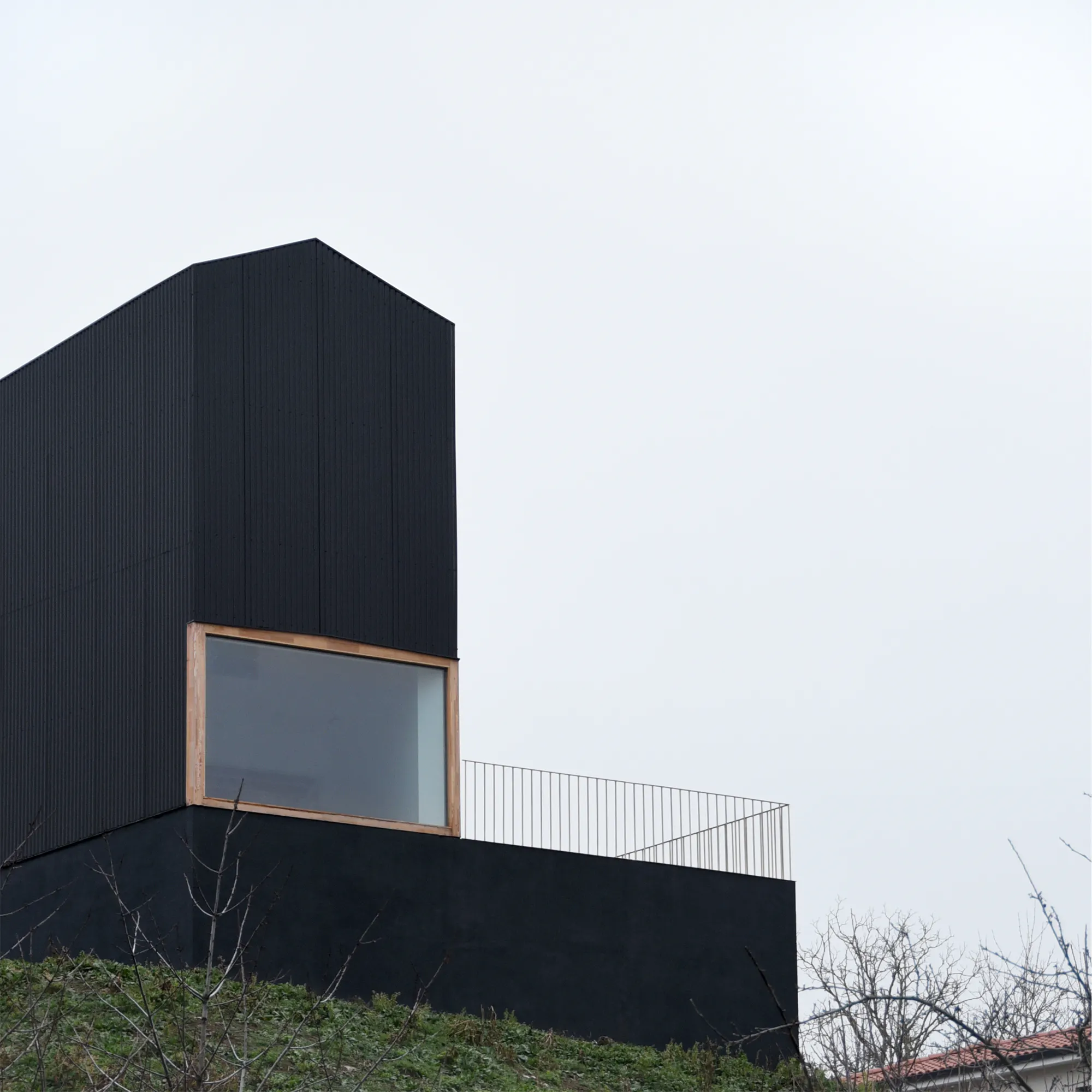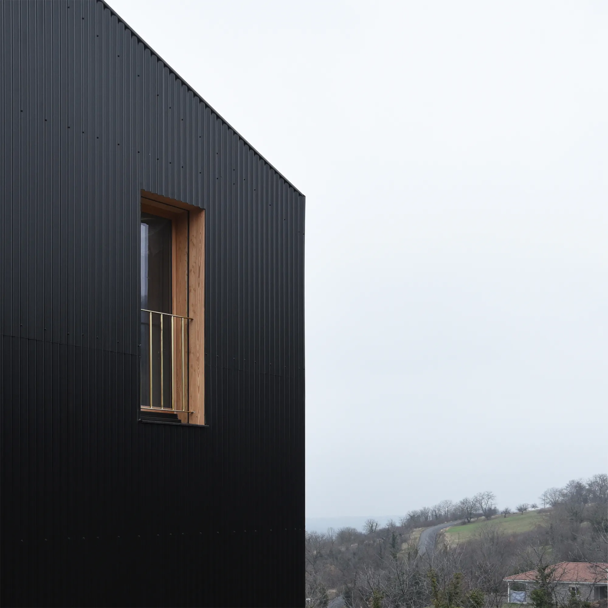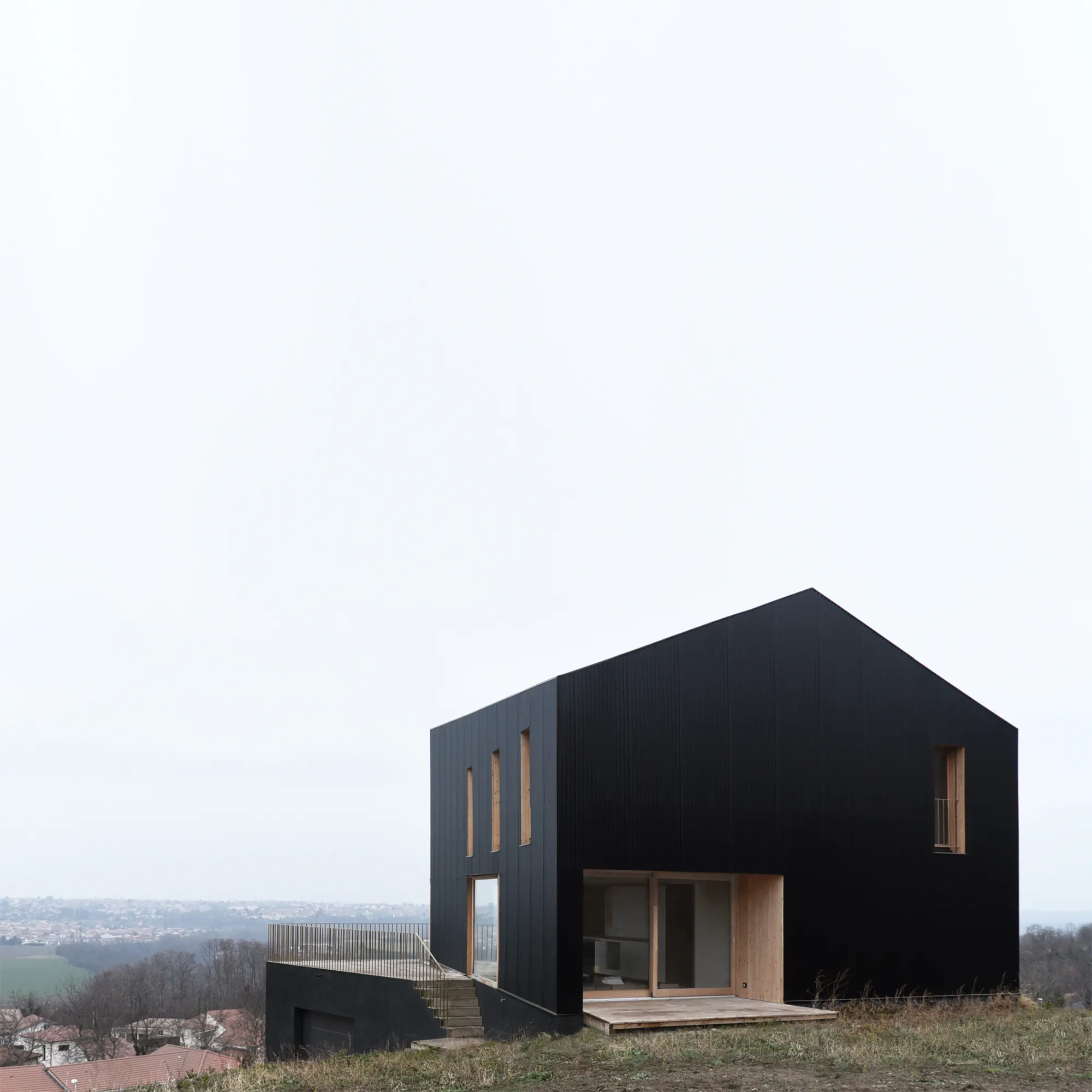 Détachée sciemment des constructions pavillonnaires en contrebas, la maison fait figure d’objet isolé et suscite une expérience immédiate dans le paysage.