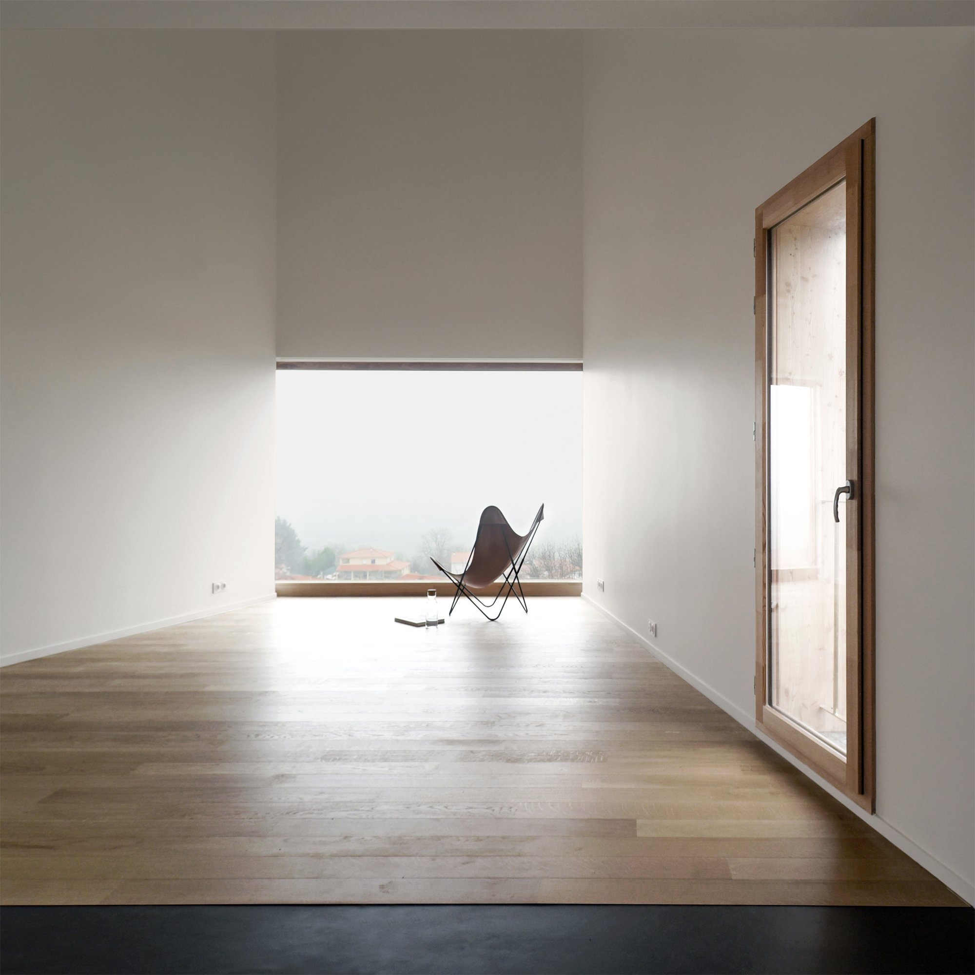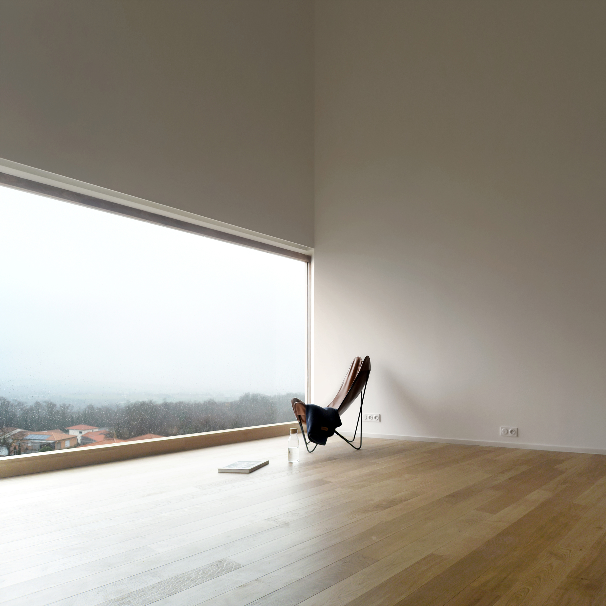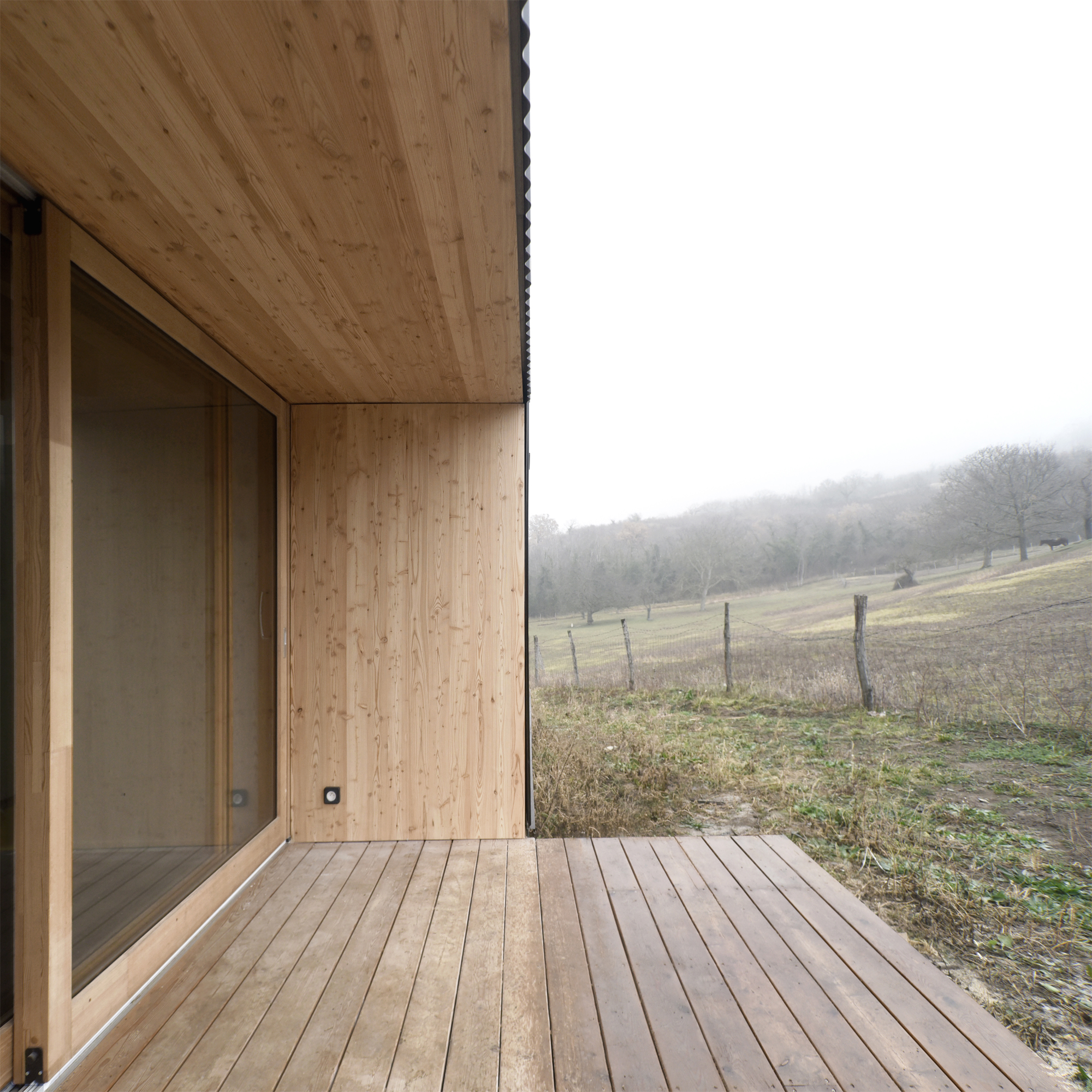 Détachée sciemment des constructions pavillonnaires en contrebas, la maison fait figure d’objet isolé et suscite une expérience immédiate dans le paysage.