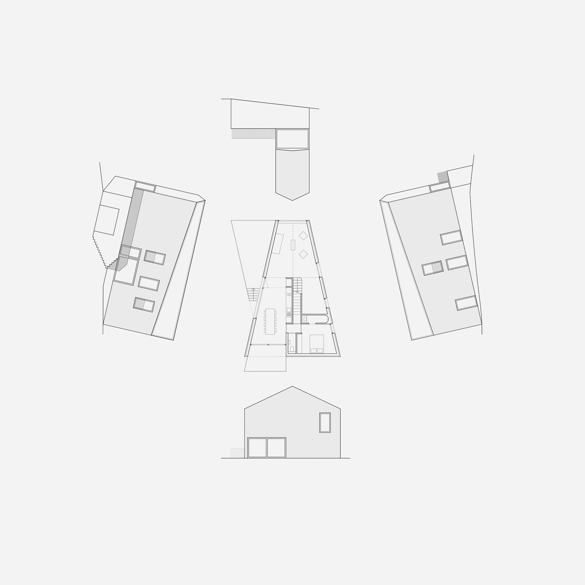 La forme prismatique du plan associée à la déclivité du terrain donne naissance à une silhouette élancée en façade Nord et à l’inverse, présente des proportions usuelles en haut de pente. Ce dispositif accompagne la répartition verticale du programme et assure la variété des espaces intérieurs, leurs orientations, leurs vues et leurs proportions.