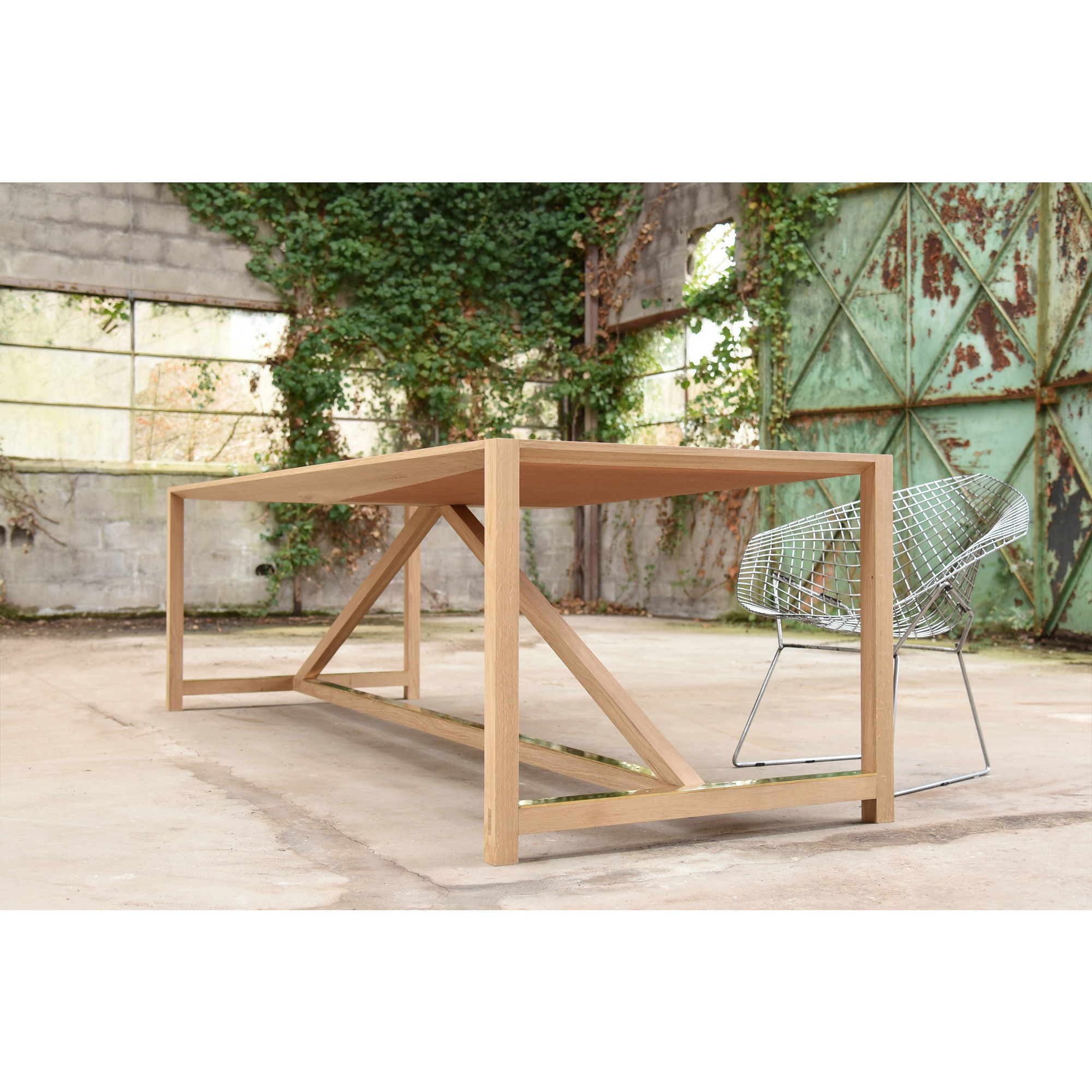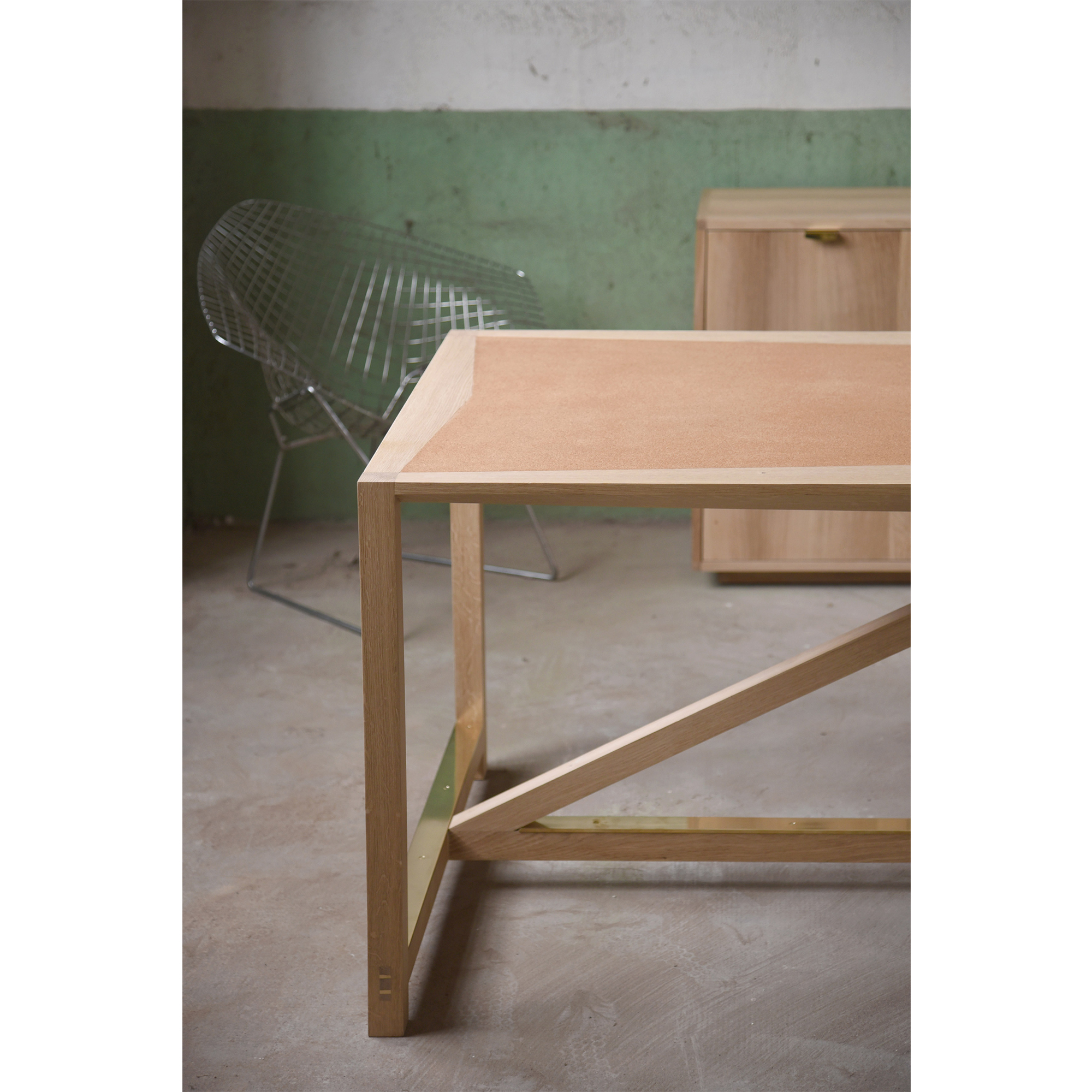 Structure: chêne massif ou noyer massif & laiton l Plateau: Chêne, noyer, liège ou linoléum l Dimension: 90x200 à 100x300 l Provenance des bois: Auvergne l Fabrication: Allier 03 l Crédits photographiques: © récita